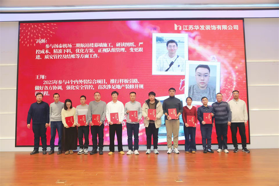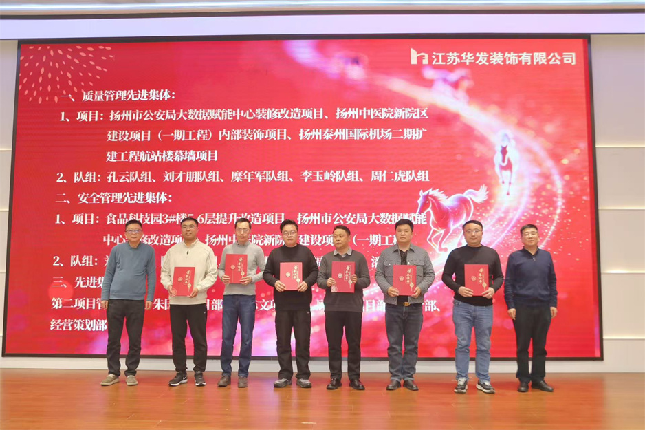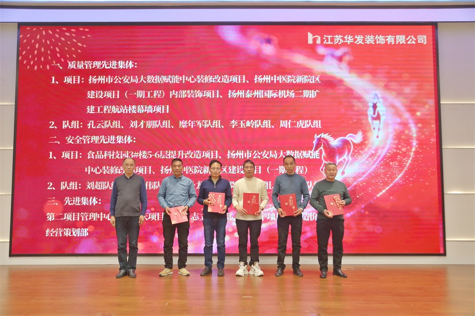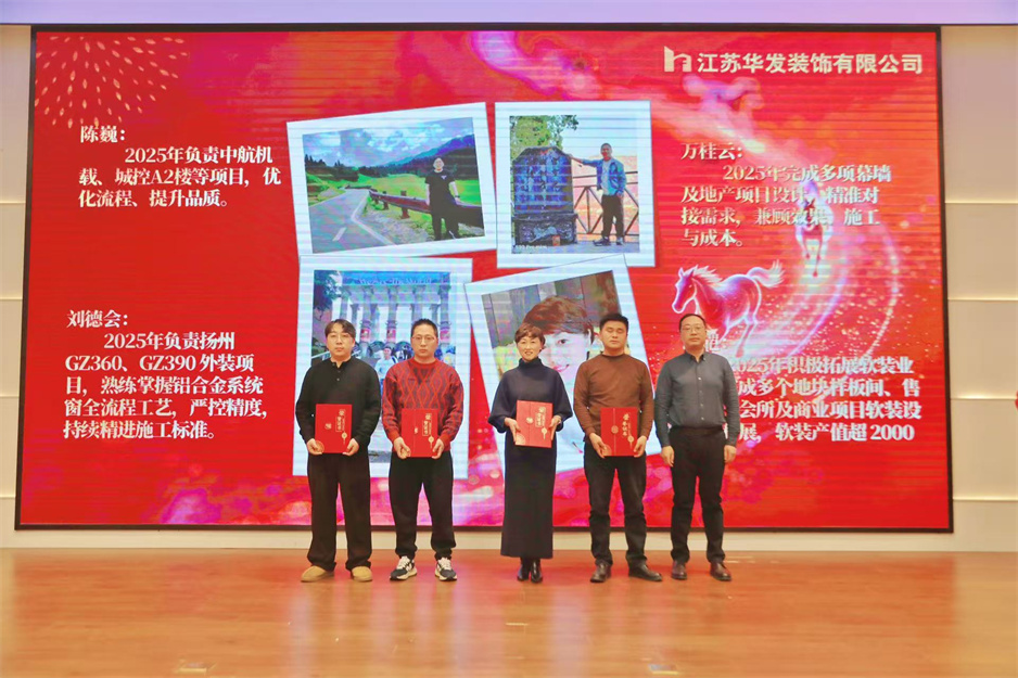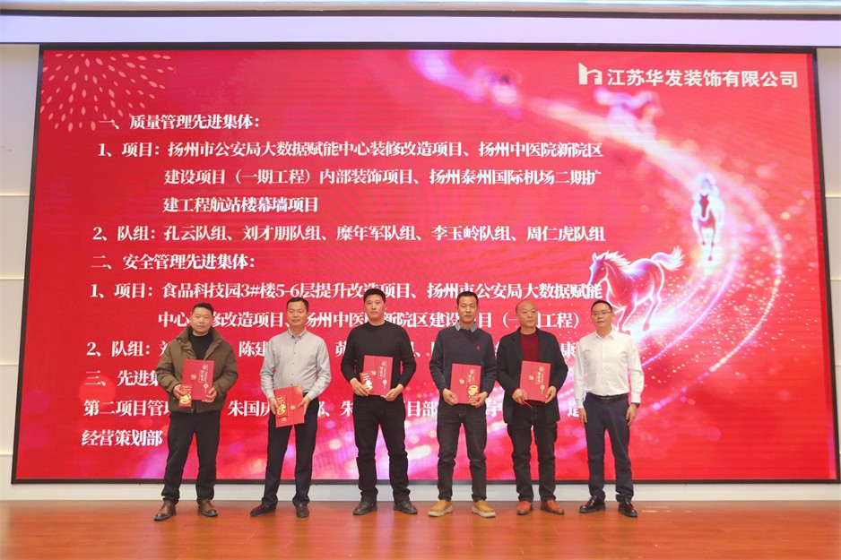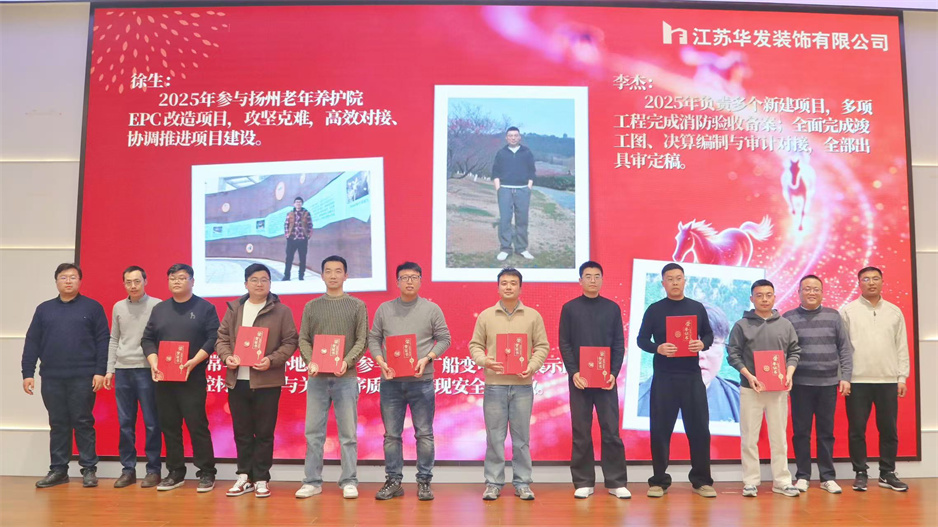 新春團拜會在熱烈的掌聲中拉開序幕,公司董事長耿杰發表新年賀詞。致辭中,耿杰董事長全面回顧了2025年公司在建筑裝飾行業深度調整的嚴峻挑戰下,取得的來之不易的優異成績:全年產值、利潤雙雙創下歷史新高,成功斬獲2項“揚子杯”、2項省標化工地、1項發明專利、3項省級工法等多項榮譽,用實干與堅守書寫了華發人的擔當。展望2026年,耿杰董事長號召全體員工牢記全市建筑業高質量發展大會上市委書記王進健的囑托,勇擔使命、爭當專業市場排頭兵,以開拓進取的銳氣拓寬經營賽道,以精益求精的態度強化內部管理,同心同德、攜手并肩,共同開創華發公司高質量發展的嶄新局面。